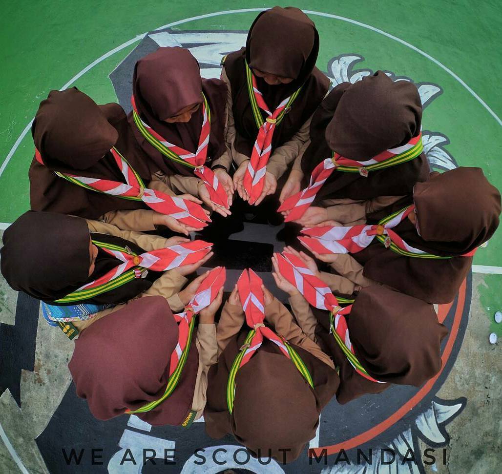 Marilah kita pegang Sang Merah Putih yang ada di pundak kita, kita lekatkan ke dada kiri kita dengan maksug agar selama jantung kita masih berdetak, kita akan selalu ingat bahwa di pundak kita dipercayakan tugas dan tanggung jawab untuk melaksanakan janji Pramuka Indonesia, tangan kanan memberi hormat, sebagai tanda penghayatan kesungguhan janji kita.